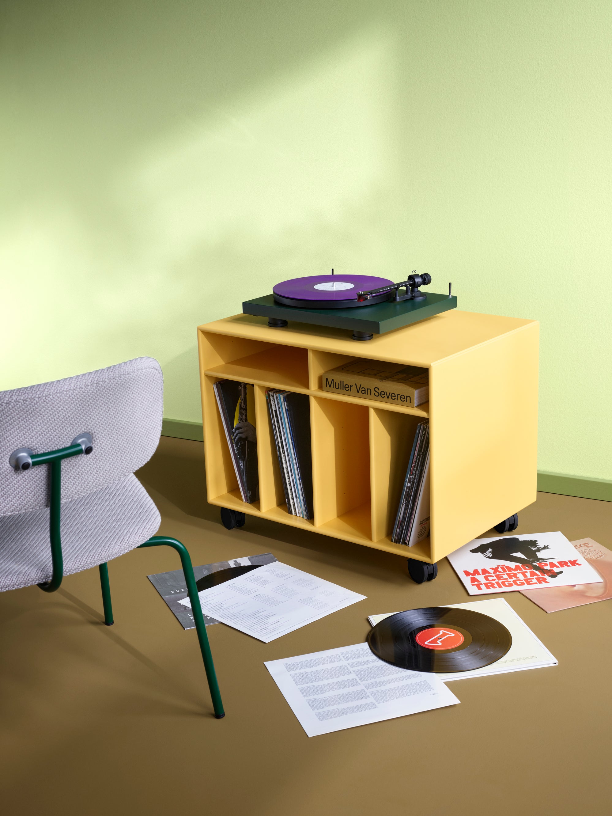 Meet SPIN I, the perfect vinyl storage solution designed to enhance your audio haven – a playful way to organize and showcase your LP collection.