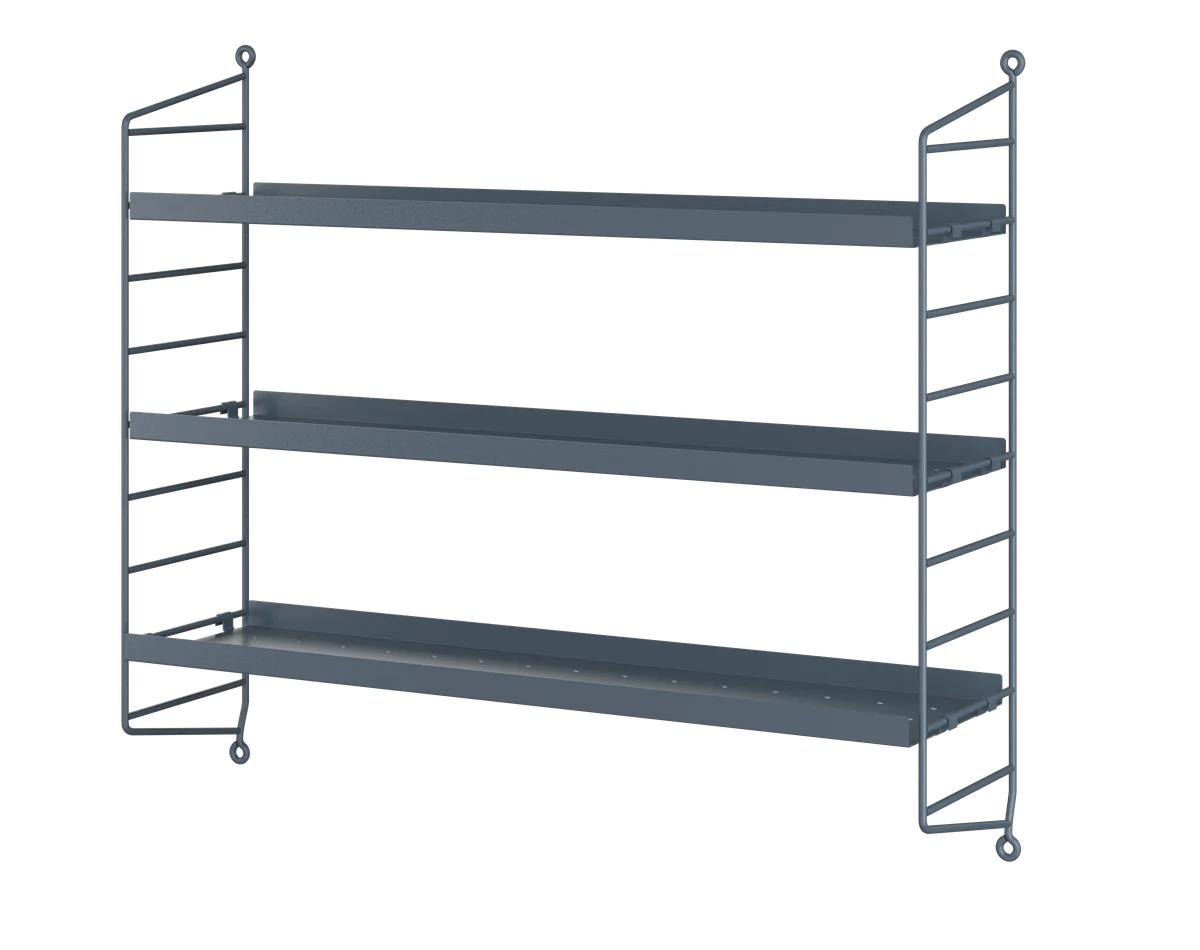 In 2020, the first interpretation of the original String® Pocket design was launched, designed by Anna von Schewen and Björn Dahlström. They kept the essence of the design because, like they said, why change a winning concept? But why not try a new material? This resulted in a brand-new version of the String® Pocket all in white metal. With perforated shelves you have the option if adding accessories, such as rods and hooks, and increase storage space in no time and make your little Pocket shelf even more useful.