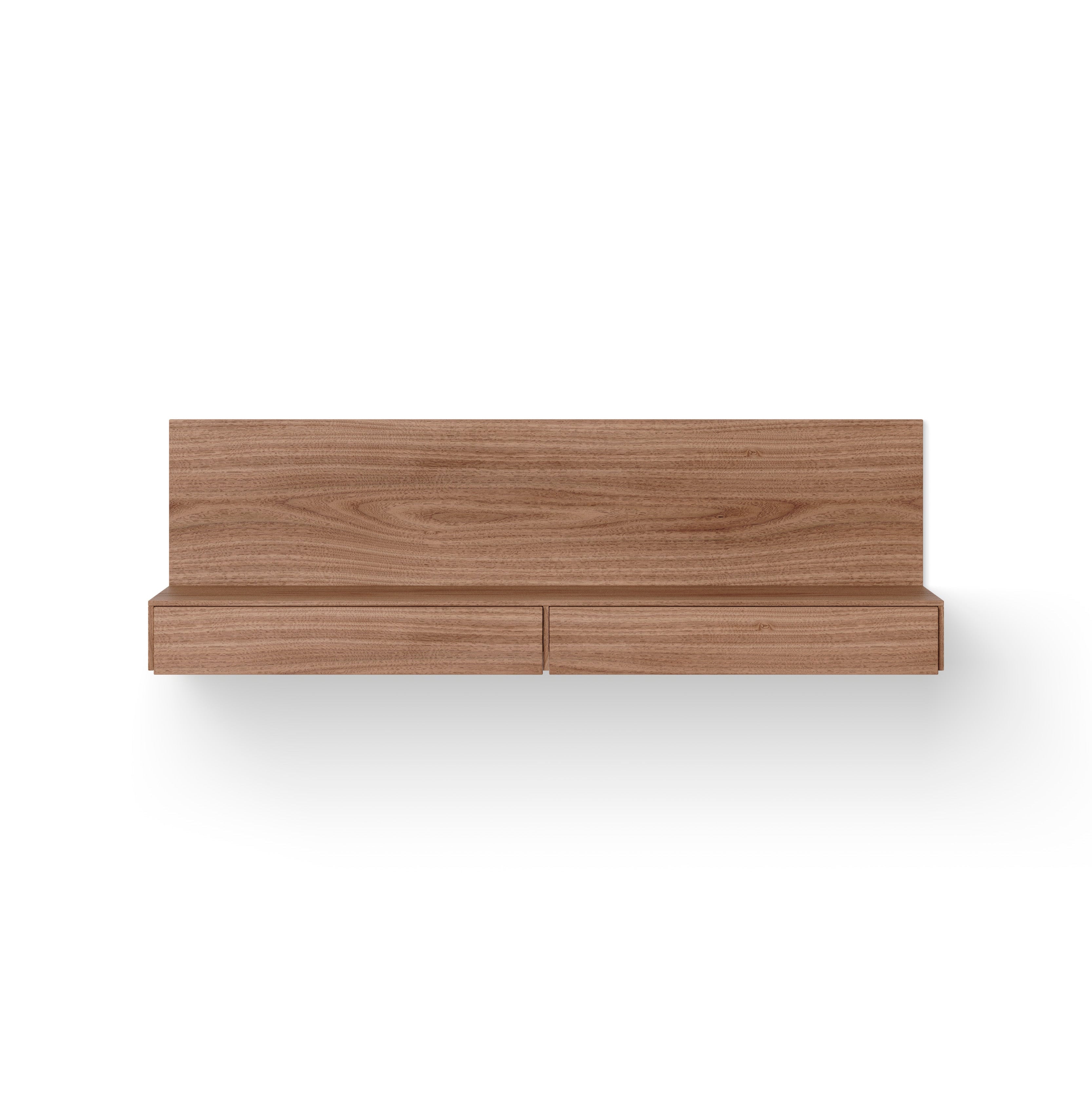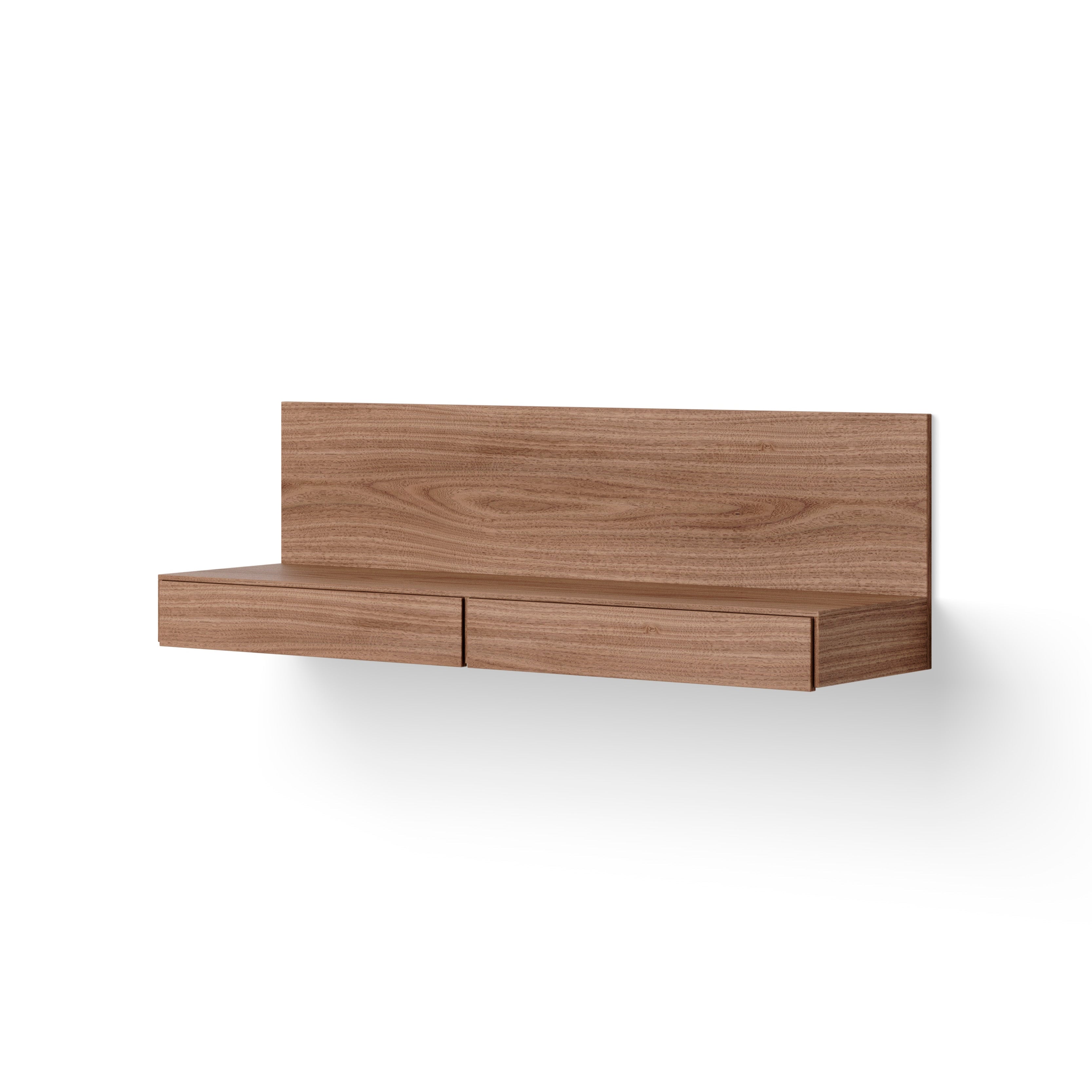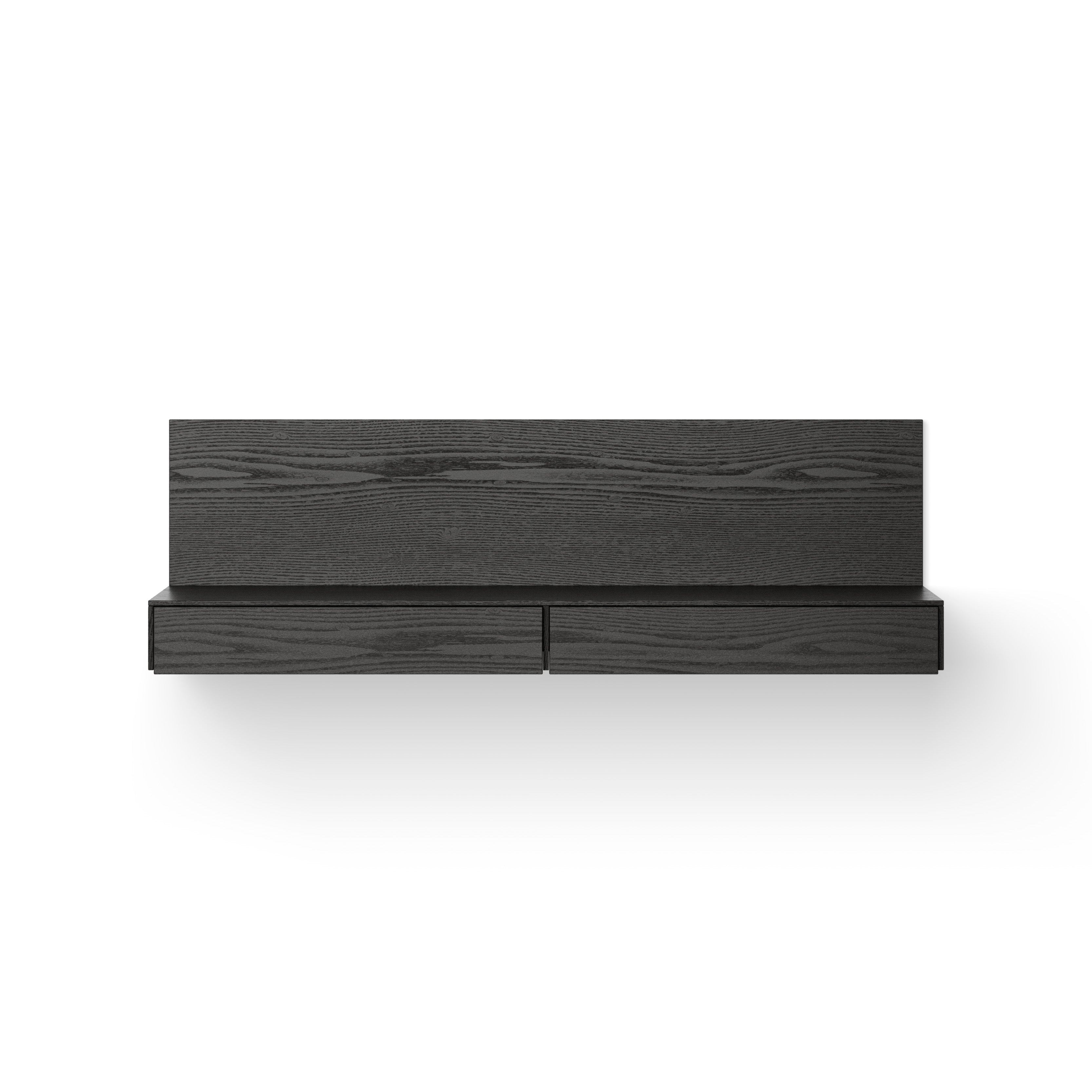 Tana is a series of wall-mounted furniture pieces designed by architect Rikke Rützou Arnved. What they all have in common is a simple expression that is neither disturbed by handles nor suspensions, but where straight lines and clean surfaces are allowed to stand in their undisturbed form. Tana consists in its cornerstone of surfaces in wood that find each other in an effortless encounter. The horizontal surface creates a ledge for objects, while its vertical surface frames and forms a calm, coherent background for what you place on the furniture.