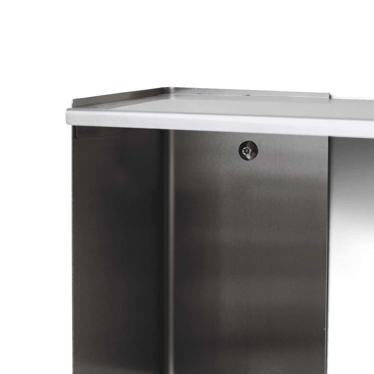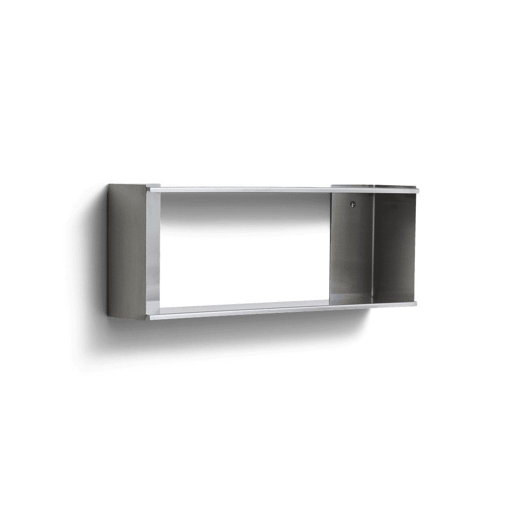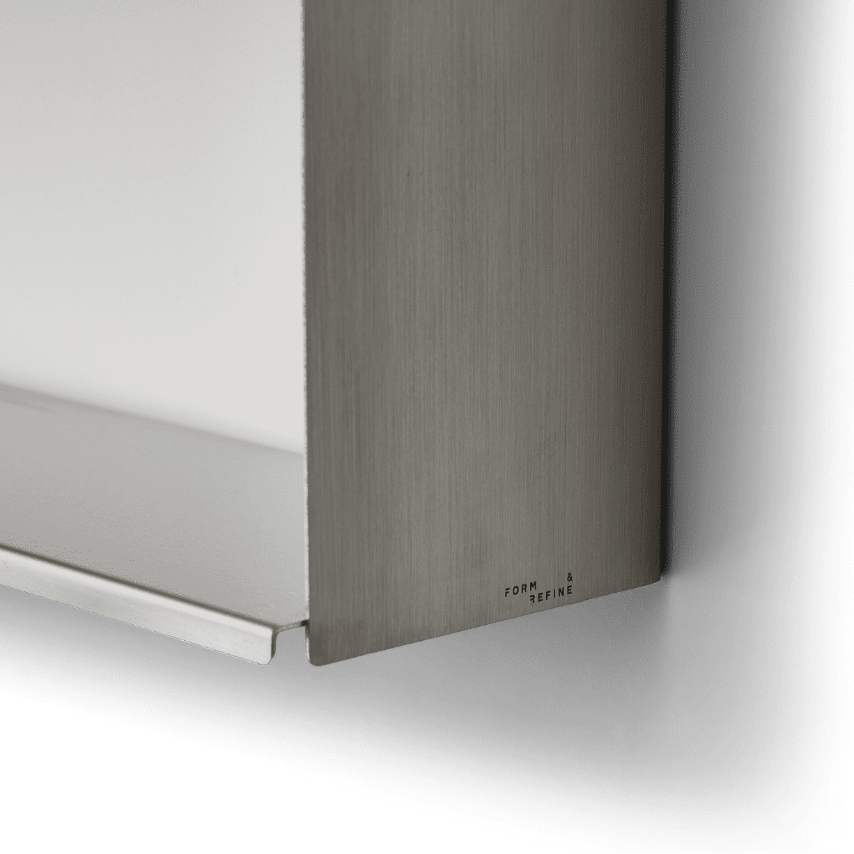 Each shelf has a gently rounded front to emphasize the detailing of the individual elements and give a smooth touch to the raw steel profiles. With its shallow depth, this functional unit provides an elegant place to display your favourite objects and drop off your everyday carry.
