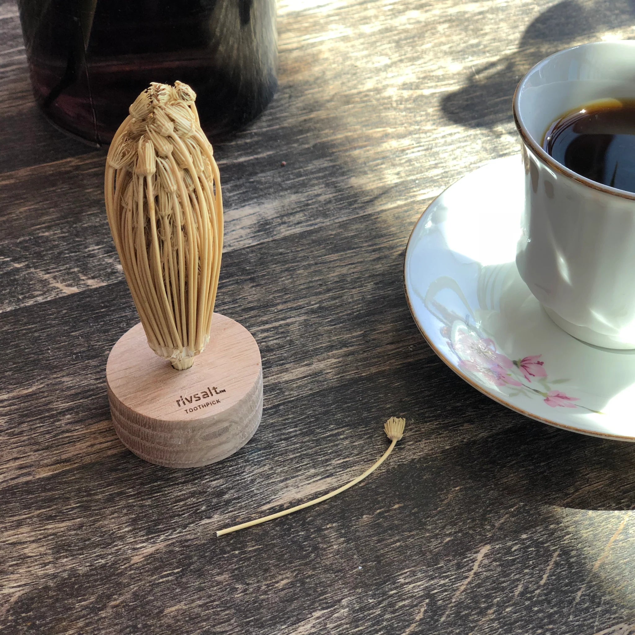 TOOTHPICK helps you and your guests get food out of your teeth in the most natural way: with an elegant flower from the toothpick plant Ammi Visnaga. Break off a flower stalk from the beautiful, dried plant and use it as a regular toothpick. Placed in the accompanying stand of untreated wood, this useful plant becomes an unusual interior design piece that will make your guests curious – and surprised.