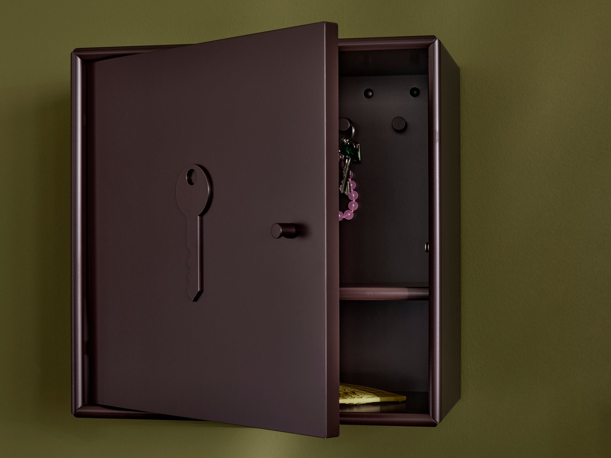 UNLOCK is a wall-mounted cabinet that with its small door icon is inviting for storing keys. Furthermore, the cabinet contains one shelf and five hooks. The key cabinet is available in all of Montana's 41 colors.