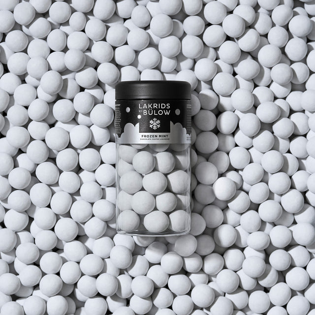 FROZEN MINT will make sure that you get to enjoy a fresh and white winter. Treat yourself to sweet licorice and soft milk chocolate with a hint of mint. A crispy shell of white sparkling sugar will make you think of white, freshly fallen snow.