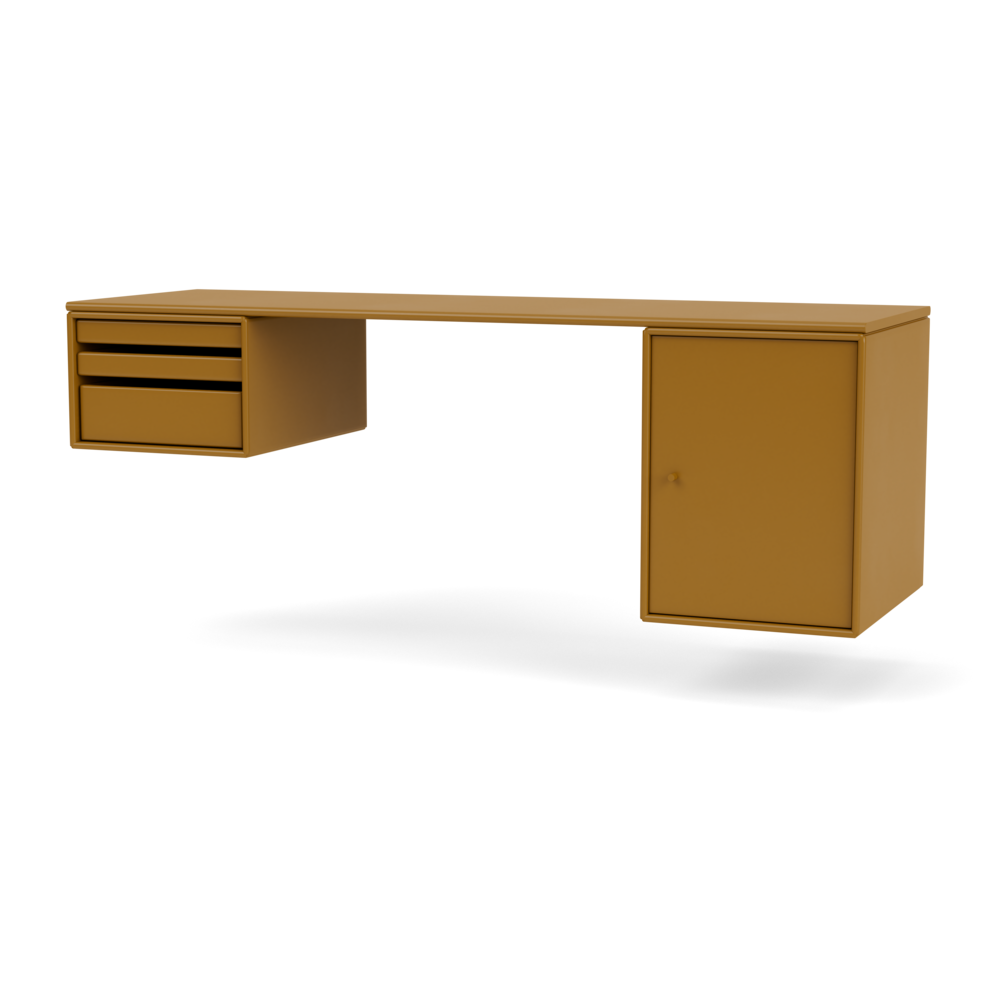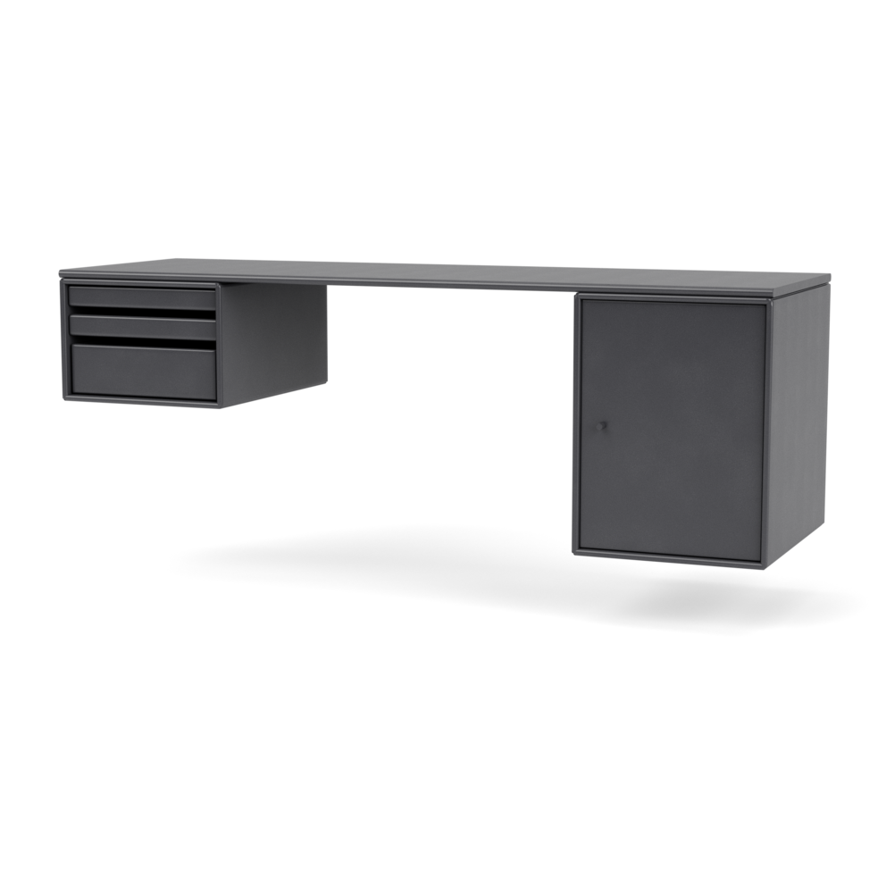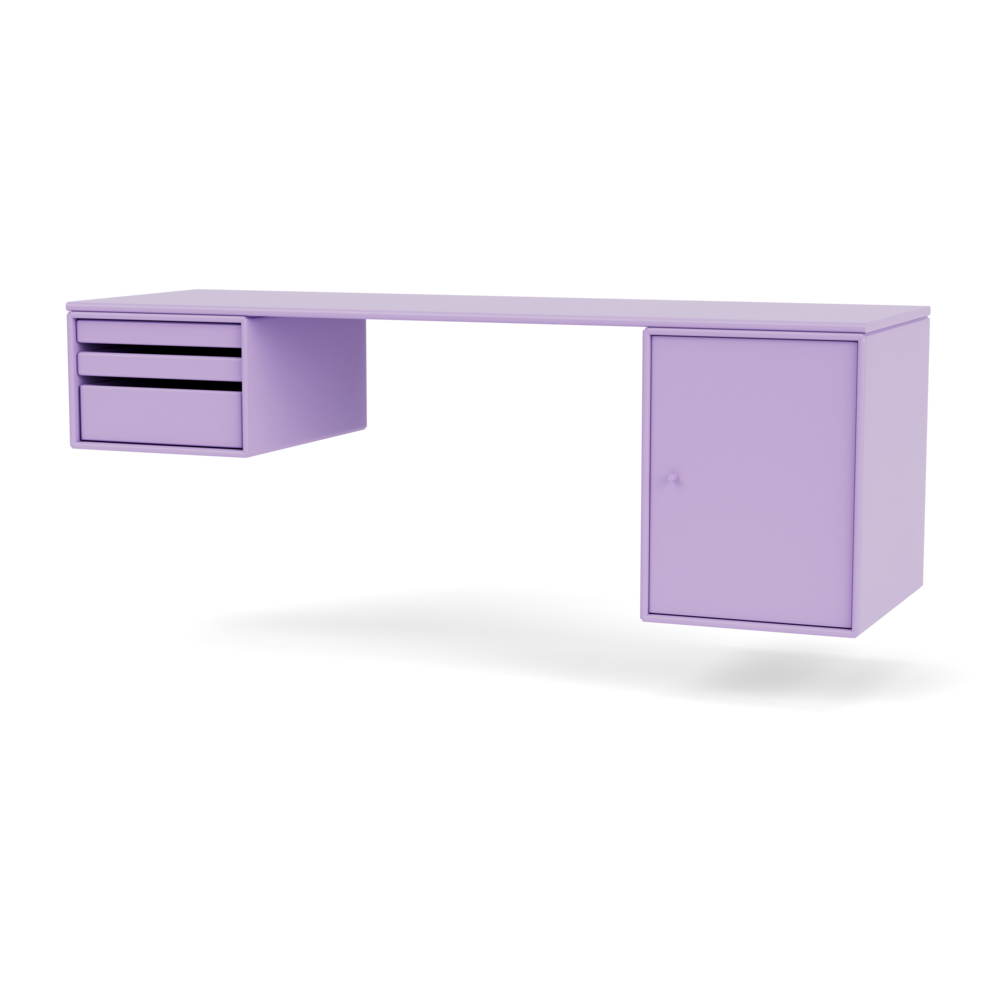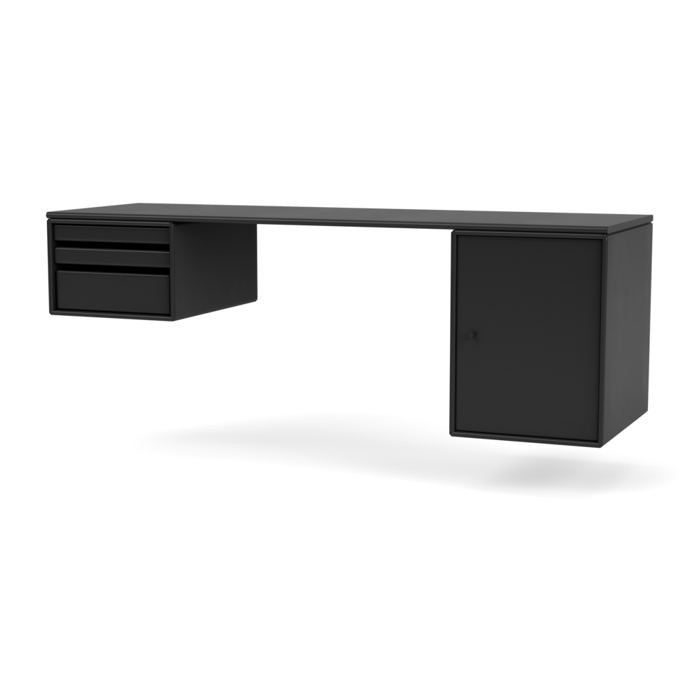 WORKSHOP has tray modules on one side that can be removed entirely from the module. On the other side is a smaller cabinet to store books or office supplies.
