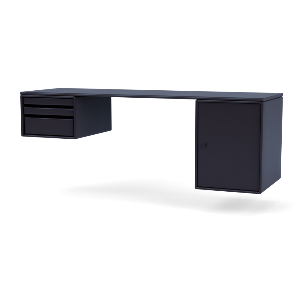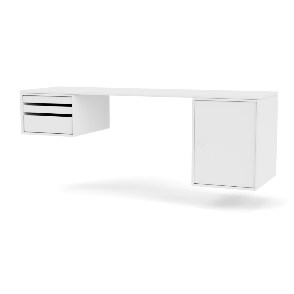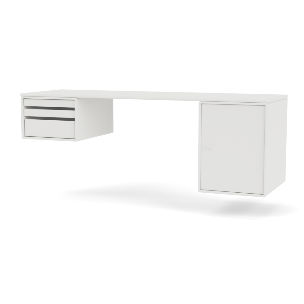 WORKSHOP is an oblong desk for the home office with leg space between two storage modules in the sides under the top panel.