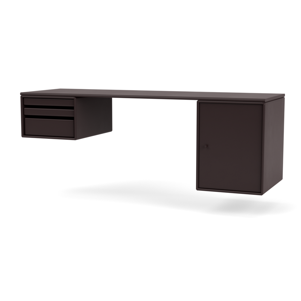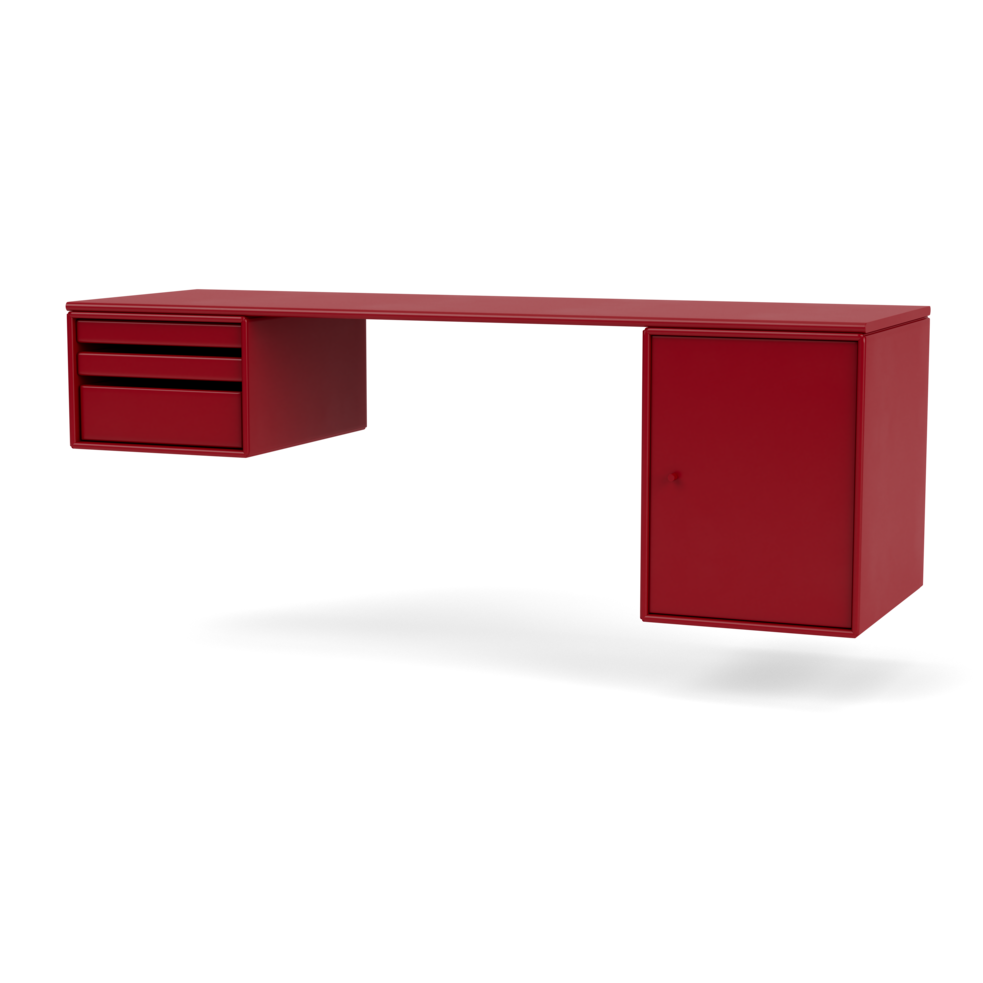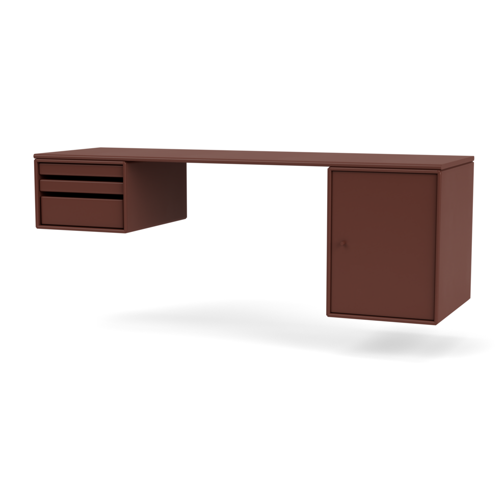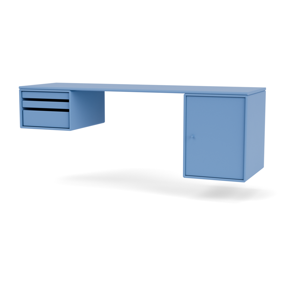 WORKSHOP is an oblong desk for the home office with leg space between two storage modules in the sides under the top panel.