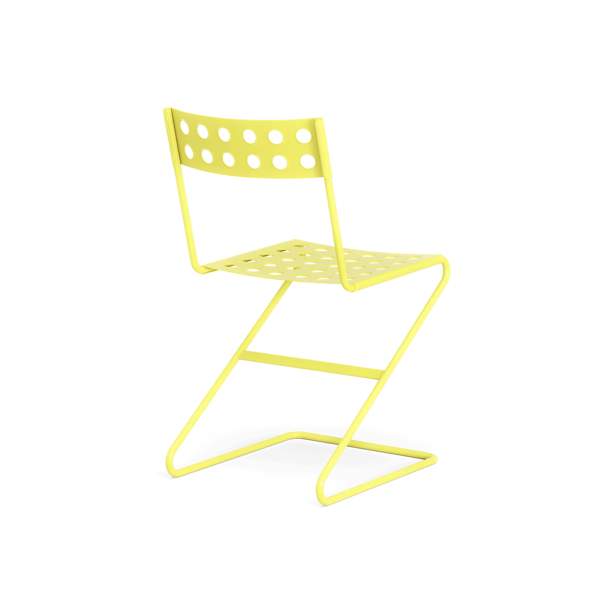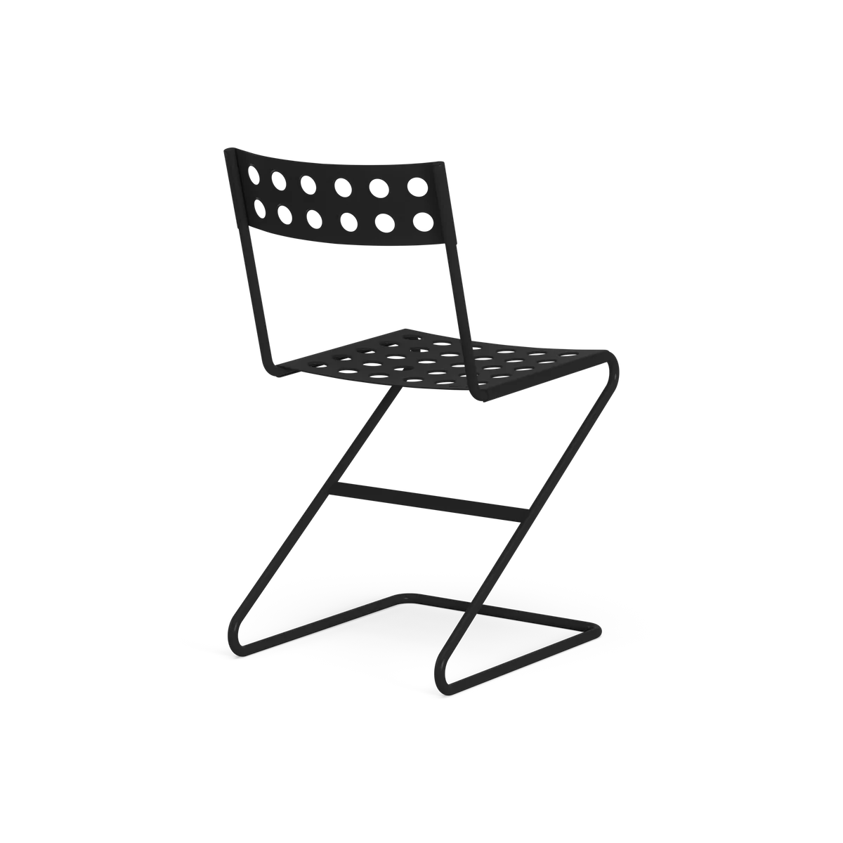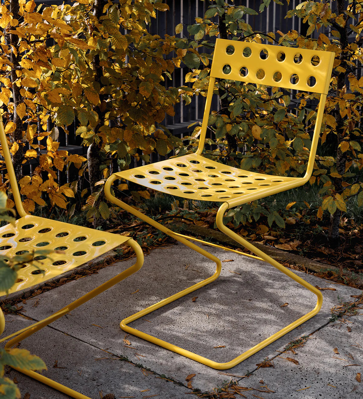With the technique of bending a solid wire of spring steel into a durable and comfortable seating furniture, Zola has already established its own identity from the start. The collar-shaped perforations create a stable seat and backrest that easily guides away rainwater.
