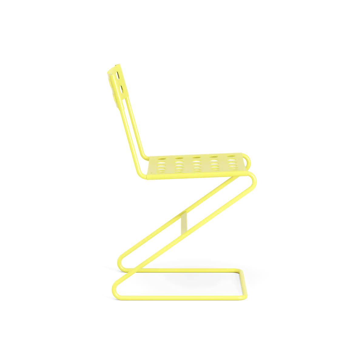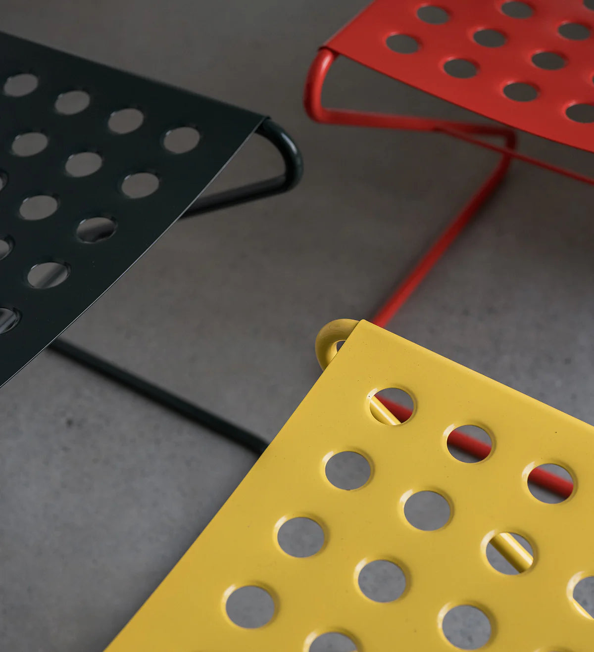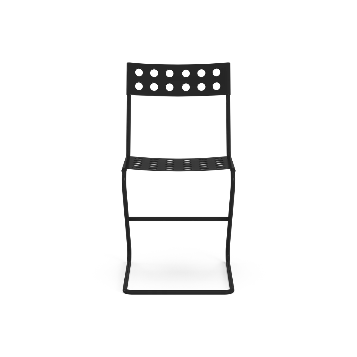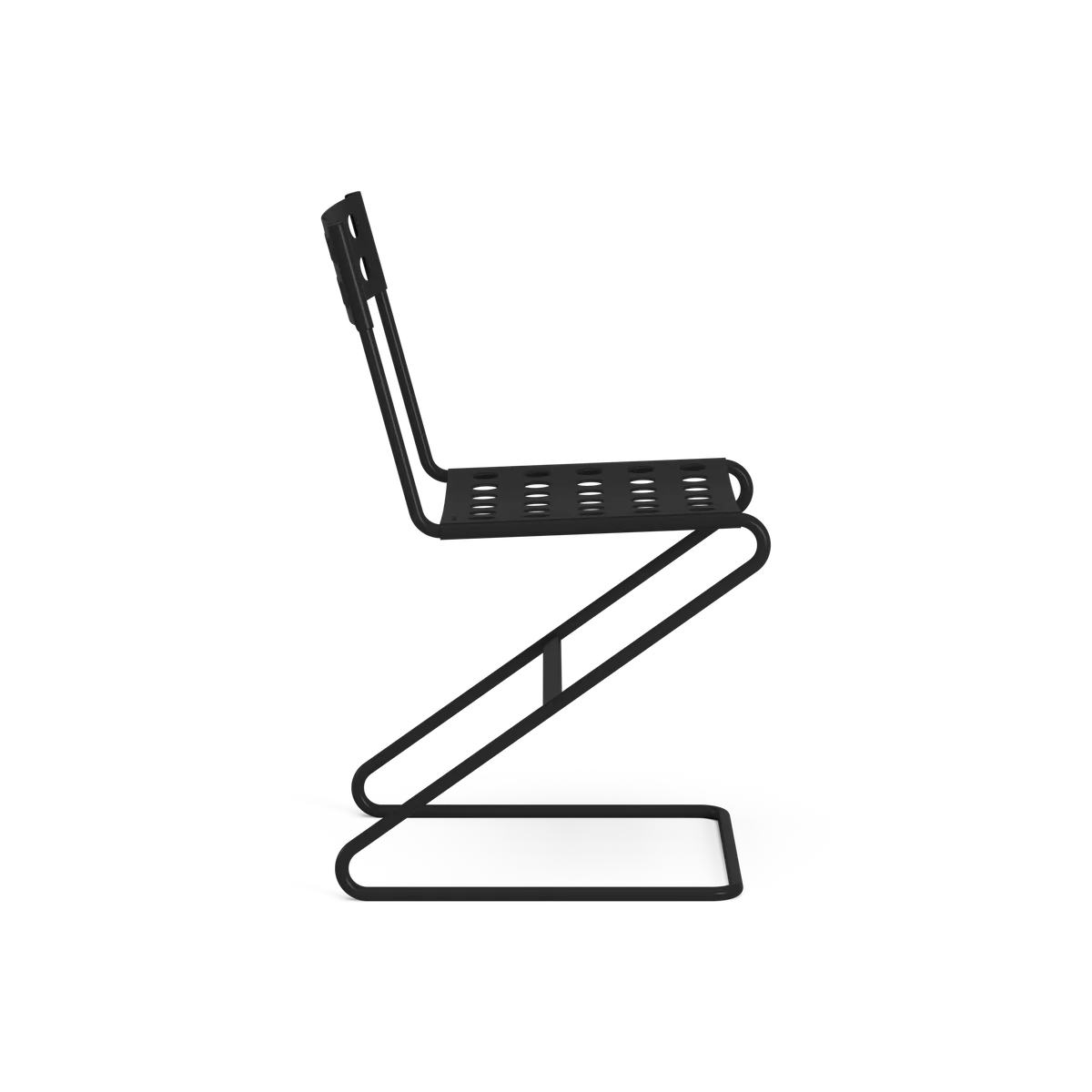 With the technique of bending a solid wire of spring steel into a durable and comfortable seating furniture, Zola has already established its own identity from the start. The collar-shaped perforations create a stable seat and backrest that easily guides away rainwater.